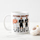 Artesia Bulldogs Football State Championship Uniforms Mug. Features some of the uniforms worn by the 33 time State Champion Bulldog football team, also includes all 33 championship years. Orange, black and white design. Looks best on white mugs.