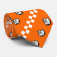 Orange, white and black Artesia Bulldogs tie featuring diagonal orange and white checkerboards and bulldog heads.