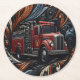 Artful Fire Truck on Round Paper Coaster