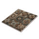 A captivating display of nine intricately designed tiles, each featuring unique geometric patterns and textures. Earthy tones blend harmoniously, revealing the skilful craftsmanship that brings each piece to life.