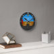 The clock did not take as long to arrive as I thought it might and was extremely well packaged. I didn't do the measurements so I didn't realize it is a little smaller than the average clock but that does not matter (just make sure you check if that's important to you).It is really nifty! It seems very solid and well made not flimsy at all. It has been going well and has kept good time in its few weeks on my wall. Nice product. Gets noticed too! Nicer in real life than the picture but true to the picture