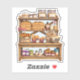A charming sticker featuring a wooden pantry filled with bread, cookies, jams, and other delicious treats, perfect for cosy-themed designs.