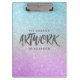 A girly blue and purple glitter, heart shaped personalised clipboard. This clipboard has the words, "The Amazing Artwork of" in a brush script font personalised with your name below. Customise the sketchbook with the name of your choice to make someone feel extra special. Great for using with copy paper to sketch on. Makes a fun gift for birthdays or for Christmas. Comes in a variety of colours. Designed for you by Blackberry Boulevard.