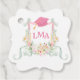Artist Crest Pink Graduation favour tags with a place for.a custom monogram
