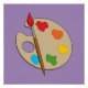 An illustration of an artist palette with colourful paint and a paint brush. This cute drawing design is a gift idea for painter, artist, and watercolor lover.