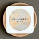 Simple line drawing of branch with leaves on IMAGE of rustic pastel blue and gold foil circle