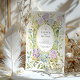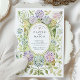 Celebrate your union with a true work of art. This breathtaking wedding invitation is inspired by the intricate beauty of Art Nouveau and stained glass design. The elaborate border features hand-painted watercolor dahlias with mosaic-like petals in a stunning palette of lavender, deep purple, and dusty teal blue. These intricate blooms are woven into a frame of swirling sage green leaves and elegant architectural elements with an antique gold and olive green watercolor wash. At the centre, a classic oval space, outlined with a delicate faux gold dotted border, beautifully presents your wedding details. This invitation is perfect for an artistic couple or a wedding with a vintage, garden, or uniquely sophisticated theme.