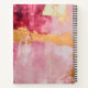 Spiral notebook wwith gold and pink artistic brush strokes make up this modern looking abstract background design.
