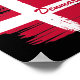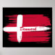 Modern poster print features artistic brushstroke illustration of Denmark's national flag on black background with red text overlay