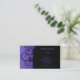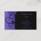 Stylish business card done in black and purple. The left side is purple with trendy black curls. The right side is black with purple text. Great for any business or occupation.