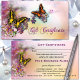 Romantic and artistic gift certificate with flowers, butterflies and bokeh effects. You can also use this card as a regular business card by deleting the front text image and customising your texts.