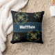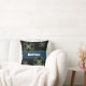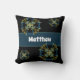 This gender-neutral baby nursery pillow features large artistic celestial lights that are displayed against a black background on both the front and back of this throw pillow. The orange, blue, and yellow lights form geometric shapes and rays of light. A banner in the centre allows for a solid background to personalise with the baby's name.