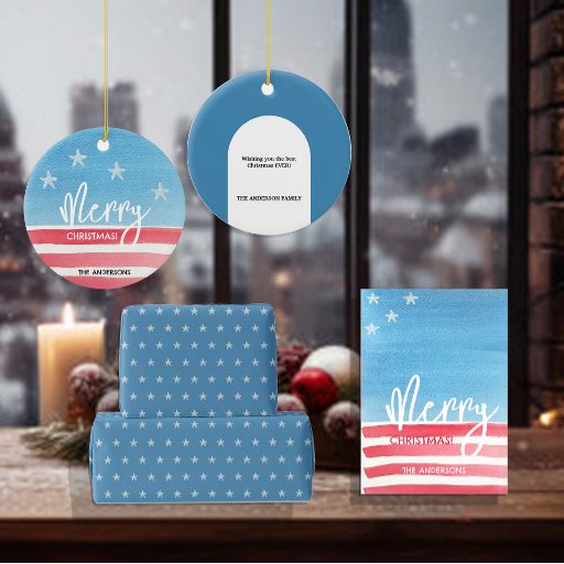 Artistic Christmas Patriotic Red And Blue Invitation