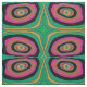 Inspired by aboriginal pattern making, I have designed this artwork ,based solely on shapes and colours I have chosen,and do not take from the exquisite artwork and the intrical meanings associated with their paintings. This is my green/ pink/ red /black /yellow swirl design. Available in other materials other than combed cotton.