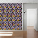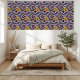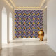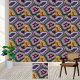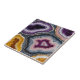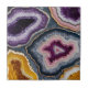 This tile features a vibrant and eye-catching geode pattern, resembling natural agate slices with a variety of crystal formations. The design incorporates rich purple, blue, yellow, and white hues, accented with a faux gold trim for a touch of elegance.