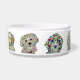 Unique, colourful dog bowl designed from my one of a kind acrylic paintings. This bowl features a labrador, pitbull, border collie mix, brittany spaniel, sheepadoodle, cockapoo, Yorkshire terrier and terrier bichon mix. Great gift for anyone that loves dogs! You won't find this unique bowl in any retail store. Bowl can be customised if you'd like to change the background colour or add text!