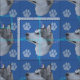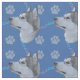 This is a fun, cute portrait of a Alaskan Malamute on a blue background with paw prints and tracks in grey, pink and blue. Design by Diane Blackman. The same design is available with other fun dog images.