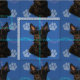 This is a fun, cute portrait of a Scotty Scottish Terrier on a blue background with paw prints and tracks in grey, pink and blue. Design by Diane Blackman. The same design is available with other fun dog images.