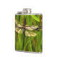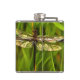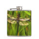 Artistic Dragonfly In Brown And Yellow On Green Hip Flask