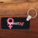 Show your support for women's fundamental rights with this keychain design that features an artistic brushstroke pink female symbol with "feminist af" text