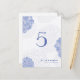 Artistic hydrangeas table number cards. Postcard size (5.6 x 4.25 inches or 14.2 x 10.8cm) cards are decorated with original artwork of hydrangea bloom outlines and shaded blue. Customise by adding each individual numeric table number in blue. Personalise by adding bride and groom names and wedding date in the corner.