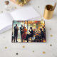 Guest book featuring a painting of a jazz orchestra with real foil texts. On the back is a chequered gold stylised design with some real gold foil squares. A beautiful festive guest book for a birthday or other celebration for a music lover.