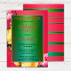 A whimsical and artistic design graduation party invitation featuring a green stylised text background framed by yellow and pink roses on a bright neon fuchsia background.