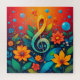 An artistic depiction of a treble clef intertwined with vibrant flowers and nature-inspired elements on a colourful gradient background, symbolising harmony, creativity, and the connection between music and nature.