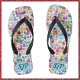 Colourful paint splat dots is a whimsical and fun design for these flip flops. Your/recipient initials on the back of each shoe. Make a festive statement!