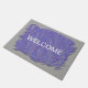 Welcome your guests with this artistic purple and grey front doormat. The background features a purple patterned square that resembles a well placed swipe of paint against a grey background. The word "Welcome" and the solid grey background colour may be customised to suit you needs.