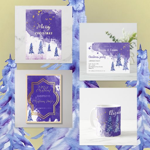 Artistic Purple Gold Watercolor Invitation