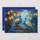 An elegant wedding anniversary invitation featuring a romantic painting of two peacocks in a festively lit tree.