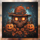 Artistic Skull and Jack-o-Lanterns Window Cling