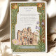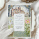 Announce your wedding with a true work of art! This exquisite double-sided invitation celebrates the historic beauty of Milwaukee's Turner Hall with a stunning custom watercolor illustration. The front of the card features the magnificent venue set against a swirling, stylised sky, perfectly capturing the essence of the Art Nouveau era. This central image is flanked by elegant panels of botanical art, including delicate irises and other vibrant blossoms.