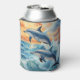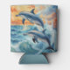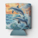 Artistic Two Jumping Dolphins Sunset Ocean Can Cooler