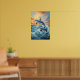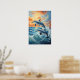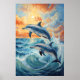 Artistic Two Jumping Dolphins Sunset Ocean Poster
