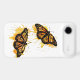 The design features two vibrant monarch butterflies in mid-flight, rendered with artistic paint splatters in warm shades of orange and yellow. This nature-inspired graphic captures the delicate elegance of spring wildlife. It makes a wonderful gift for gardeners, entomology enthusiasts, nature lovers, or anyone who appreciates the symbolism of freedom and change.