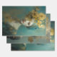 Artistic women's portraits, gold accents, flowers wrapping paper sheet