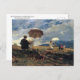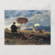 A fine art postcard with the painting, Artists Sketching in the White Mountains (1868) by the America artist Winslow Homer (1836-1910). Painters under umbrellas drawing on easels high up in the White Mountains.