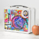 This is a standard metal lunchbox that appears to work just fine. We designed this box ourselves with an uploaded photo and custom text on the front and back. It looks absolutely beautiful except the front of the lunchbox is not centered like it shows in the photo. The print borders don't align with the inset flat part of the box where the preview photo online showed it perfectly centered in there. The back looks nice and centered though.