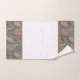 This elegant Bath towel set features a Oak leaf design. The Oak leaf is a classic Arts and crafts motif. This particular pattern of Oak leaves comes from a variation (digitally altered) of handmade tile from Oregon tile maker Fay Jones Day. The Oak leaves and acorns are metallic copper. The background is a textured cool light green. This will be a perfect addition to your Craftsman Bungalow Bathroom. Look for the other items in this collection.