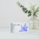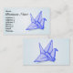 A blue paper origami crane. A smart looking business card for craft store or crafty person.