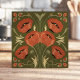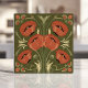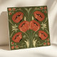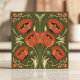 Arts and Crafts Poppy Floral on Olive Green Tile