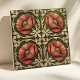 Celebrate the beauty of the Arts and Crafts movement with this striking tile design featuring bold red poppies framed by intricate olive green and ivory scrollwork. The detailed floral elements and symmetrical layout create a timeless and sophisticated aesthetic, perfect for adding character to kitchens, bathrooms, or accent walls. With its rich, earthy tones and artisan-inspired craftsmanship, this piece brings warmth and elegance to any traditional or modern space. A stunning addition to your interior design.