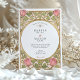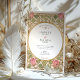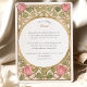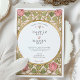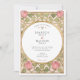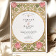 Declare your love with this uniquely romantic wedding invitation, inspired by the enchanting Arts and Crafts and Art Nouveau movements. This artistic design showcases a symmetrical border of stylised pink tulips and whimsical, heart-shaped leaves in a soft sage green. The entire illustration is defined by elegant, flowing linework in an antique gold hue, creating a sophisticated and timeless feel. A graceful oval frame provides the perfect centerpiece for your wedding details, which are presented in a classic serif font. This invitation is ideal for an artistic couple planning a vintage, romantic, or garden-themed wedding with a touch of historical charm.