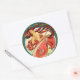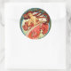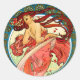 1898 Art Nouveau lithograph poster by Czech artist, Alphonse Mucha (1860-1939). Beautiful woman in a red dress, flowers in her long, flowing, bright red hair, her back arched, looking over bared shoulders, standing on her toes.