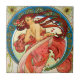 1898 Art Nouveau lithograph poster by Czech artist, Alphonse Mucha (1860-1939). Beautiful woman in a red dress, flowers in her long, flowing, bright red hair, her back arched, looking over bared shoulders, standing on her toes.