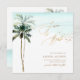 ArtsApp tropical paradise by the shore save the date card. Featuring tropical coconut palms. Accented with elegant luxe calligraphy script, wedding sign with DIY colours. DIY colours, all elements are editable. Copyright © 2023 ArtsApp™. All rights reserved.