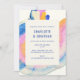 Artsy Abstract Watercolor in Blue, Pink, and Yellow Wedding Invitation