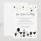 Artsy Black Gold New Years Eve Party. With trendy champagne, glasses, balloons and cake motifs.